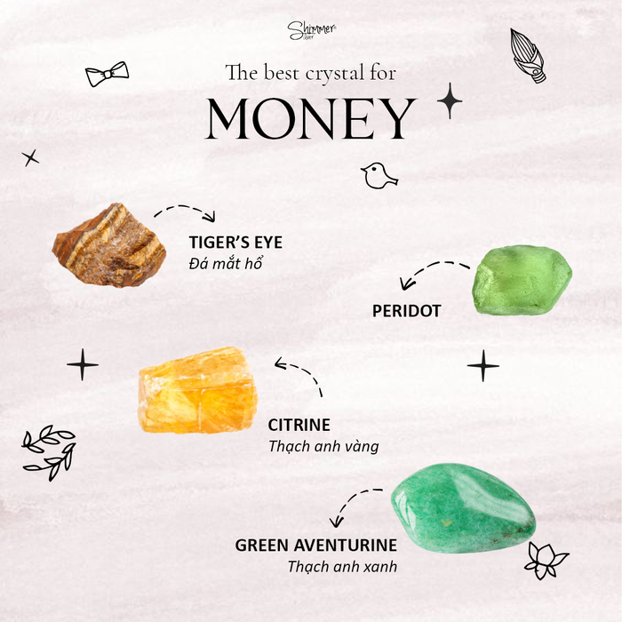 🪙 Peridot: 💰 - May mắn - Bảo hộ - Healing - Tình yêu - Cân bằng