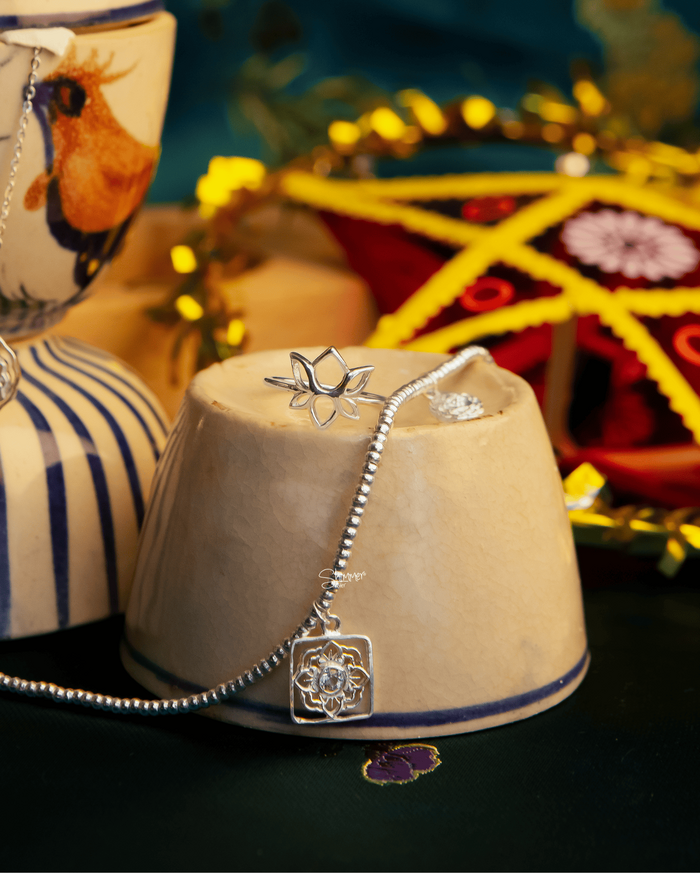 Lấy cảm hứng từ vẻ đẹp lặng yên của mùa trăng rằm, bộ sưu tập gợi lại những hình ảnh quen thuộc: thỏ ngọc nhảy múa dưới ánh trăng, đàn cá chép🐟 bơi lượn an yên trong làn nước, bánh Trung Thu 🥮 tròn đầy hương vị đoàn viên, và những hoa văn truyền thống được chạm khắc tinh xảo trên nền bạc 925. Với Shimmer, mỗi thiết kế trong Lunar Glow là một lát cắt ký ức, gợi lại những mùa trăng xưa nhưng vẫn mang hơi thở của hôm nay. Và chúng mình tin rằng dẫu ta đã lớn, Trung Thu vẫn sẽ luôn ở đó, như khoảng trời tuổi thơ dịu dàng chờ ta tìm về.