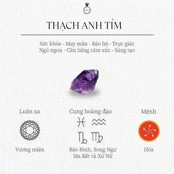 Thạch anh tím là một loại đá bán quý thuộc họ thạch anh, nổi tiếng với màu tím quyến rũ từ nhạt đến đậm. Thạch anh tím được coi là biểu tượng của sự bình an, trí tuệ và tinh thần thanh tịnh. Loại đá này đã được sử dụng từ thời cổ đại trong các trang sức, với niềm tin giúp xua tan căng thẳng, mang lại sự cân bằng và bình yên trong tâm hồn. Cách bảo quản đá thạch anh tím: