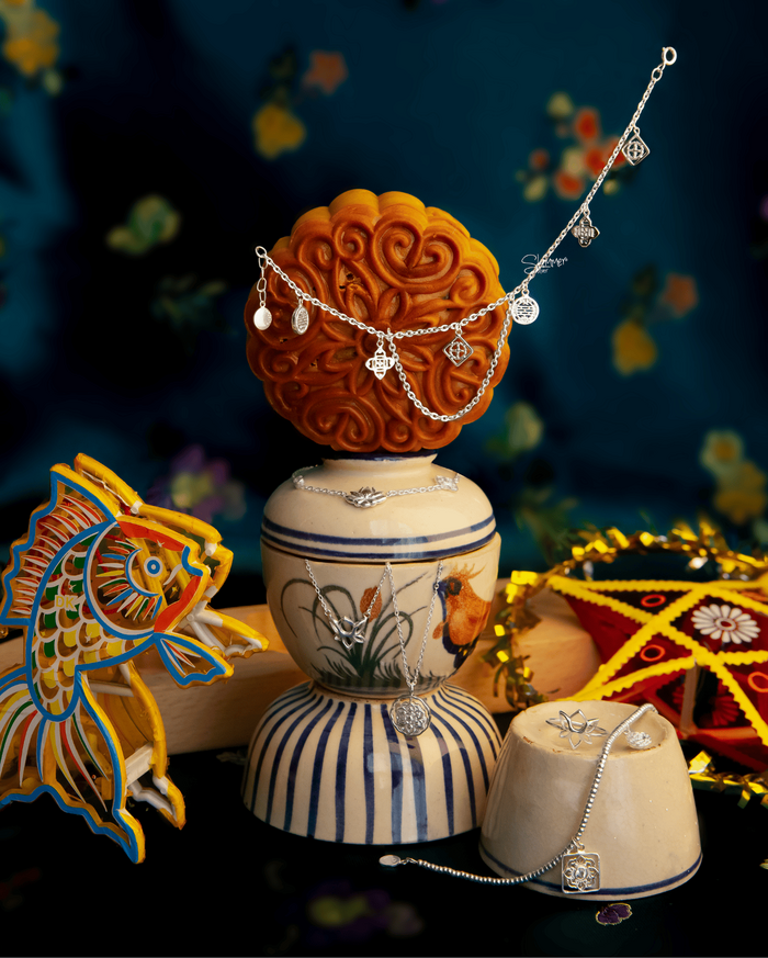 Lấy cảm hứng từ vẻ đẹp lặng yên của mùa trăng rằm, bộ sưu tập gợi lại những hình ảnh quen thuộc: thỏ ngọc nhảy múa dưới ánh trăng, đàn cá chép🐟 bơi lượn an yên trong làn nước, bánh Trung Thu 🥮 tròn đầy hương vị đoàn viên, và những hoa văn truyền thống được chạm khắc tinh xảo trên nền bạc 925. Với Shimmer, mỗi thiết kế trong Lunar Glow là một lát cắt ký ức, gợi lại những mùa trăng xưa nhưng vẫn mang hơi thở của hôm nay. Và chúng mình tin rằng dẫu ta đã lớn, Trung Thu vẫn sẽ luôn ở đó, như khoảng trời tuổi thơ dịu dàng chờ ta tìm về.