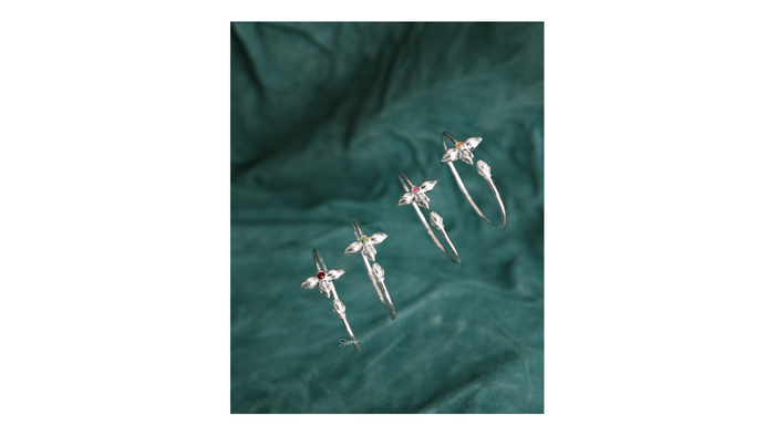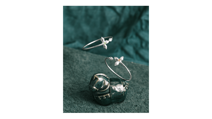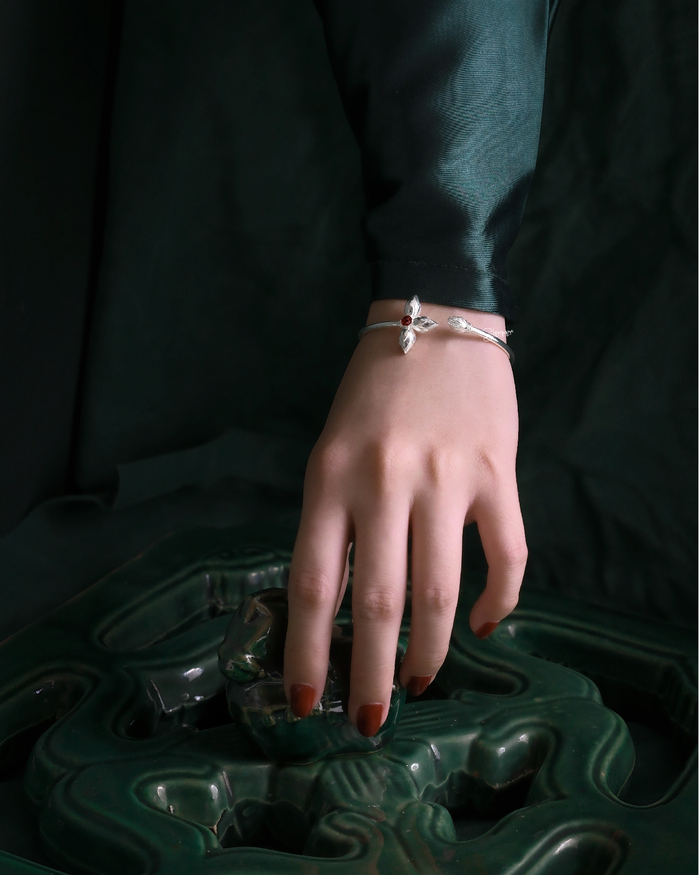 Từ cảm hứng ấy, chiếc vòng “Nhã” – Delicate 2026 ra đời như lời tri ân vẻ đẹp vừa đủ và tinh tế. Thiết kế chế tác từ bạc 925 và đá thiên nhiên, lưu giữ tinh thần thanh nhã của hoa văn xưa. Họa tiết hoa bốn cánh còn tượng trưng cho sự cân bằng và viên mãn. Điểm đặc biệt của “Nhã” là ba cánh nở trọn ở đầu vòng, cánh thứ tư ở cuối, hướng về phía trước như một hành trình dần hoàn thiện vòng tròn nhờ năng lượng và sự tự tin của người đeo. Khi nội tâm đủ vững, ta nhẹ nhàng tỏa sáng nhờ sự an yên bên trong.