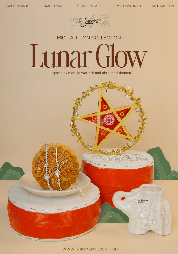 Lấy cảm hứng từ vẻ đẹp lặng yên của mùa trăng rằm, bộ sưu tập gợi lại những hình ảnh quen thuộc: thỏ ngọc nhảy múa dưới ánh trăng, đàn cá chép🐟 bơi lượn an yên trong làn nước, bánh Trung Thu 🥮 tròn đầy hương vị đoàn viên, và những hoa văn truyền thống được chạm khắc tinh xảo trên nền bạc 925. Với Shimmer, mỗi thiết kế trong Lunar Glow là một lát cắt ký ức, gợi lại những mùa trăng xưa nhưng vẫn mang hơi thở của hôm nay. Và chúng mình tin rằng dẫu ta đã lớn, Trung Thu vẫn sẽ luôn ở đó, như khoảng trời tuổi thơ dịu dàng chờ ta tìm về.